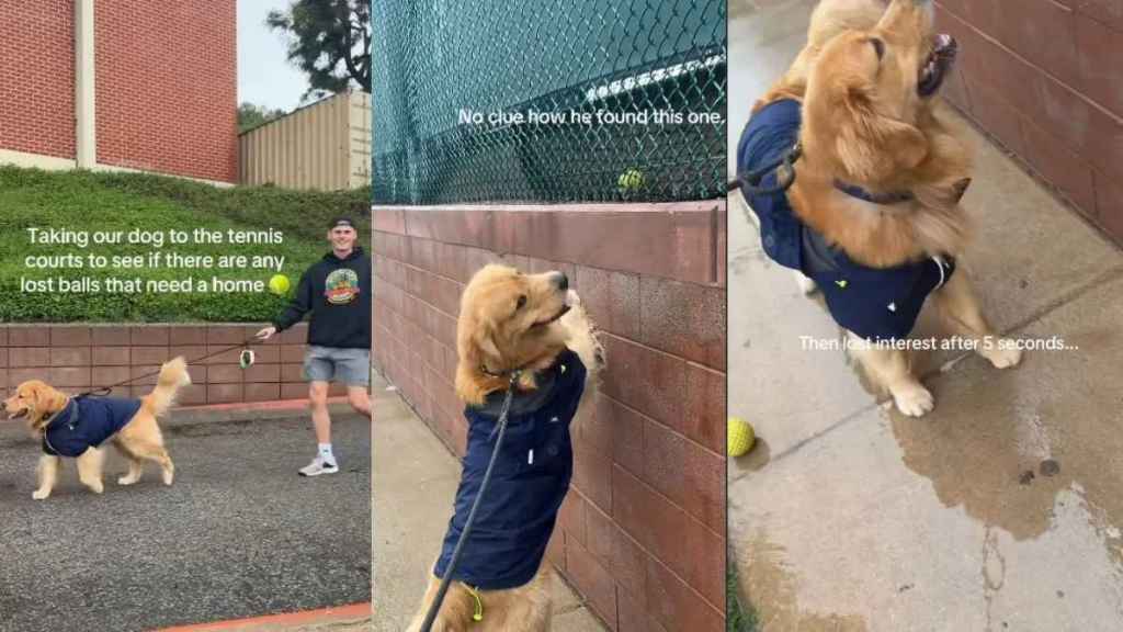 Video shows Golden Retriever and humans hunting for lost tennis balls
