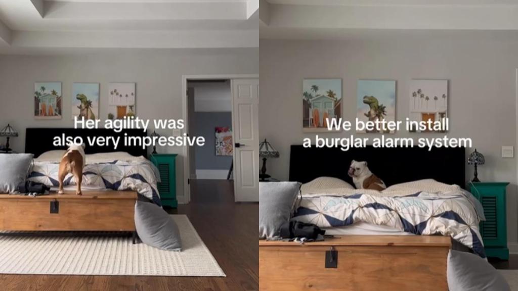 The move is sneaky, and the timing of the video of the dog climbing onto the bed makes it a heist masterclass. English Bulldogs aren’t exactly built for slinking, but she emerges with the stealth of a professional burglar. She even takes a second to pivot toward the open doorway, making sure her dad isn’t coming back for a forgotten phone.