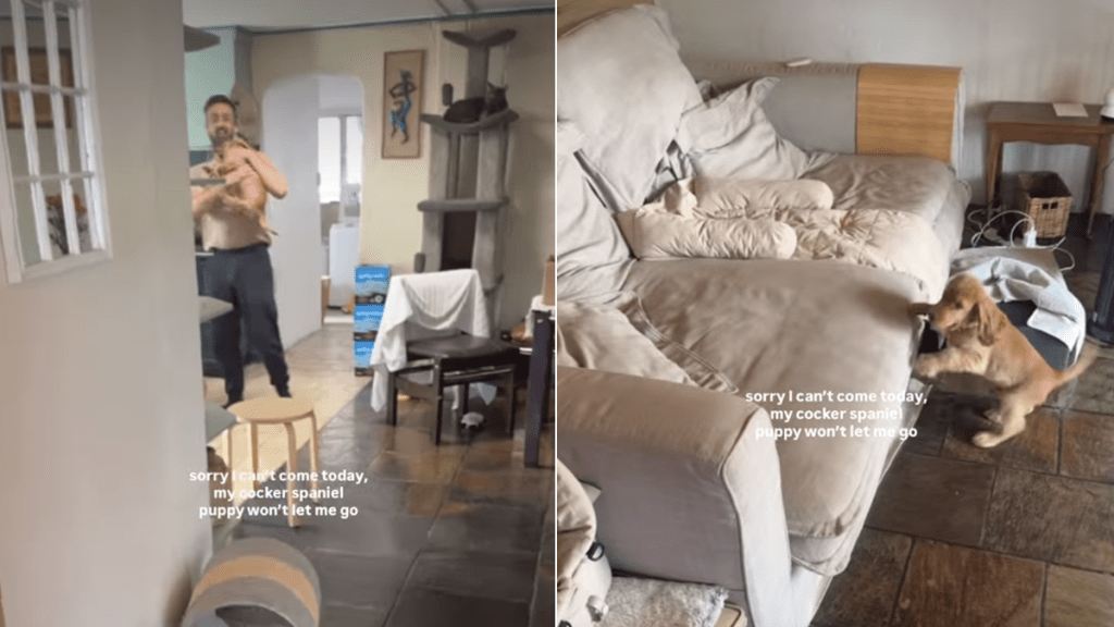 An adorable Instagram video showcased a cute English Cocker Spaniel puppy named Sir Teddy being super clingy to his owner and making sure his pet parent can’t leave the house. The video has been winning hearts on social media, as people love the pup’s feisty and adorable personality.
