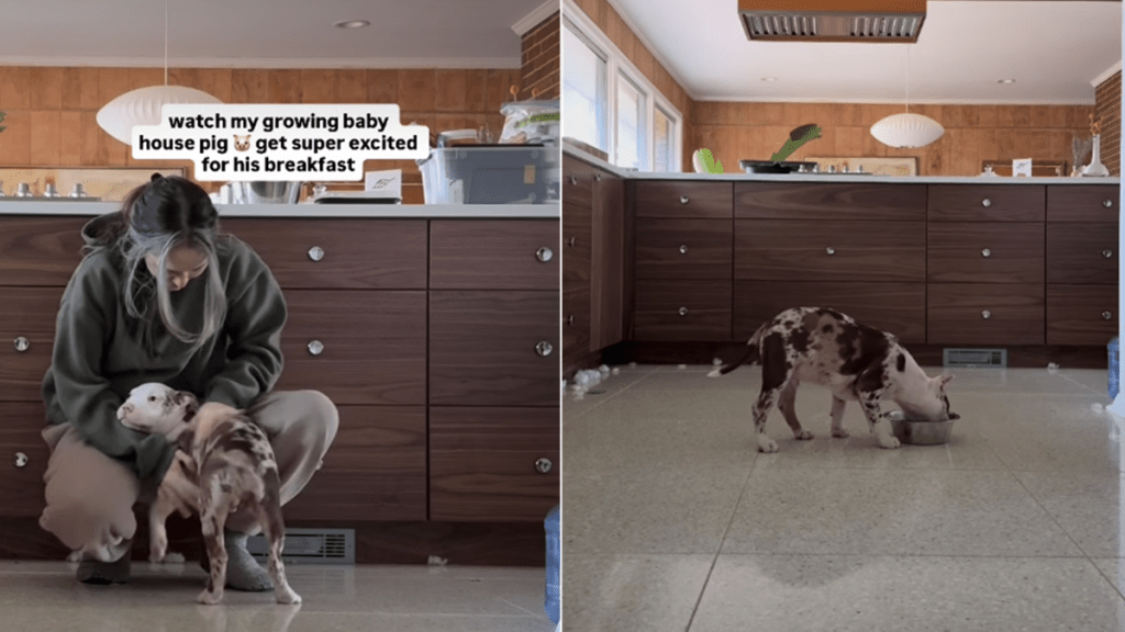 Breakfast isn’t even on screen yet, and Piglet has already chosen his spot in the kitchen. He is just waiting. This video by @wethreepitties shows the Pit Bull puppy getting ready for his meal, and it truly is a mood. Most people would be annoyed by a slow breakfast service. But this little guy is just shaking with joy. He is a foster through Hope Animal Rescue. And he is already a pro at the kitchen wait game. He sits there very still. Until his foster mom, Roni, says the magic words.